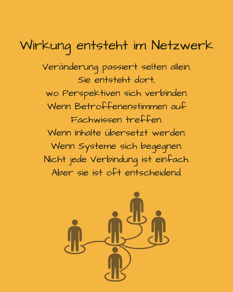 Mein Ziel: Brücken bauen zwischen Betroffenen und Fachwelt – damit Verständnis wächst, Strukturen entlastet werden und alle Beteiligten handlungsfähig bleiben. Ob in Form von Workshops, Fachvorträgen oder moderierten Prozessen – gemeinsam entwickeln wir Lösungen, die tragen: